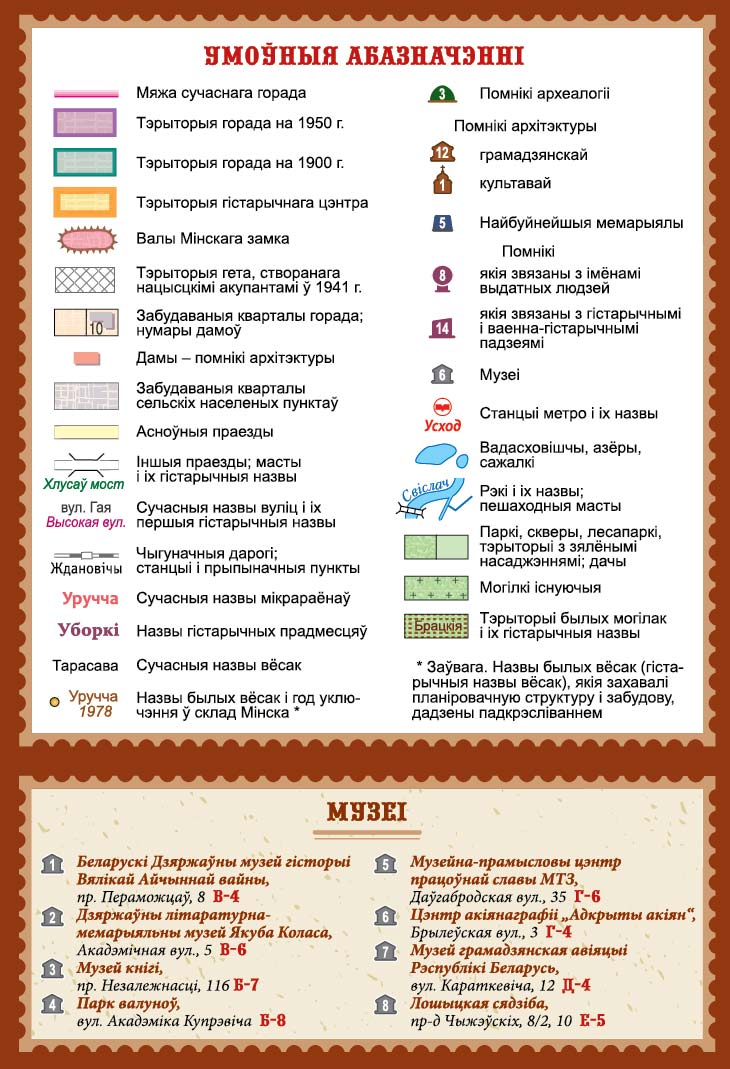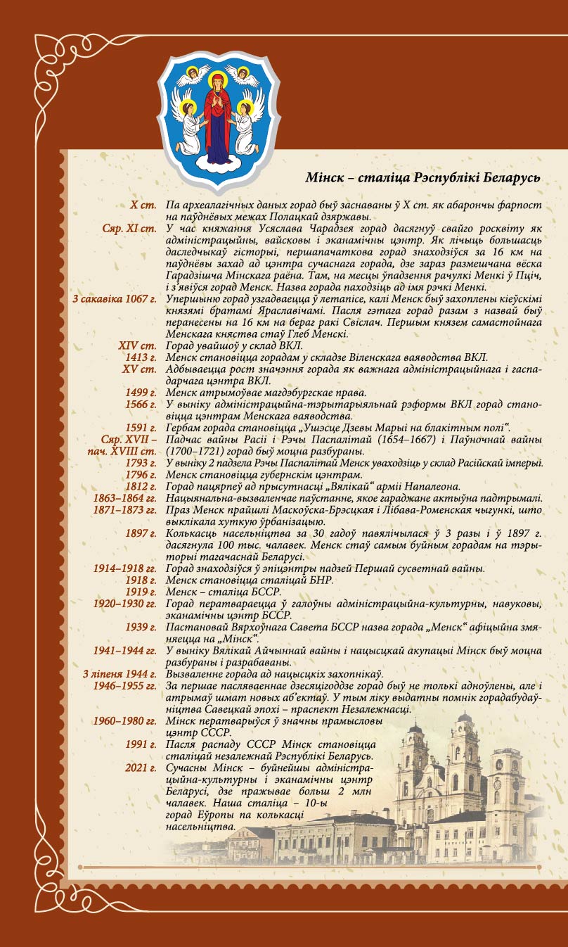 Впервые издана историческая карта-справочник «Мінск гістарычны» на белорусском языке. На карте дана информация более чем о 150-ти музеях, мемориалах, памятниках (археологии, гражданской и культовой архитектуры; посвященных историческим, военно-историческим событиям, известным людям). Так же на карту нанесены границы территории Минска по данным на 1900-е и 1950-е годы, обозначен исторический центр города, указаны названия и местоположение исторических предместий Минска. Названия улиц даны в двух вариантах: их первые исторические названия и современные. Указаны местоположение и названия бывших деревень, которые вошли в черту города и год их включения.