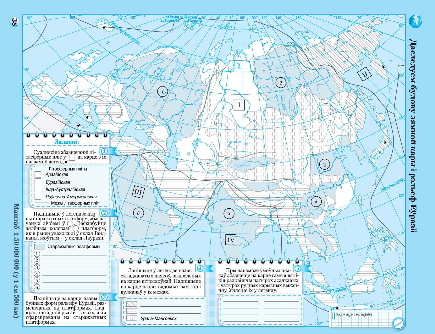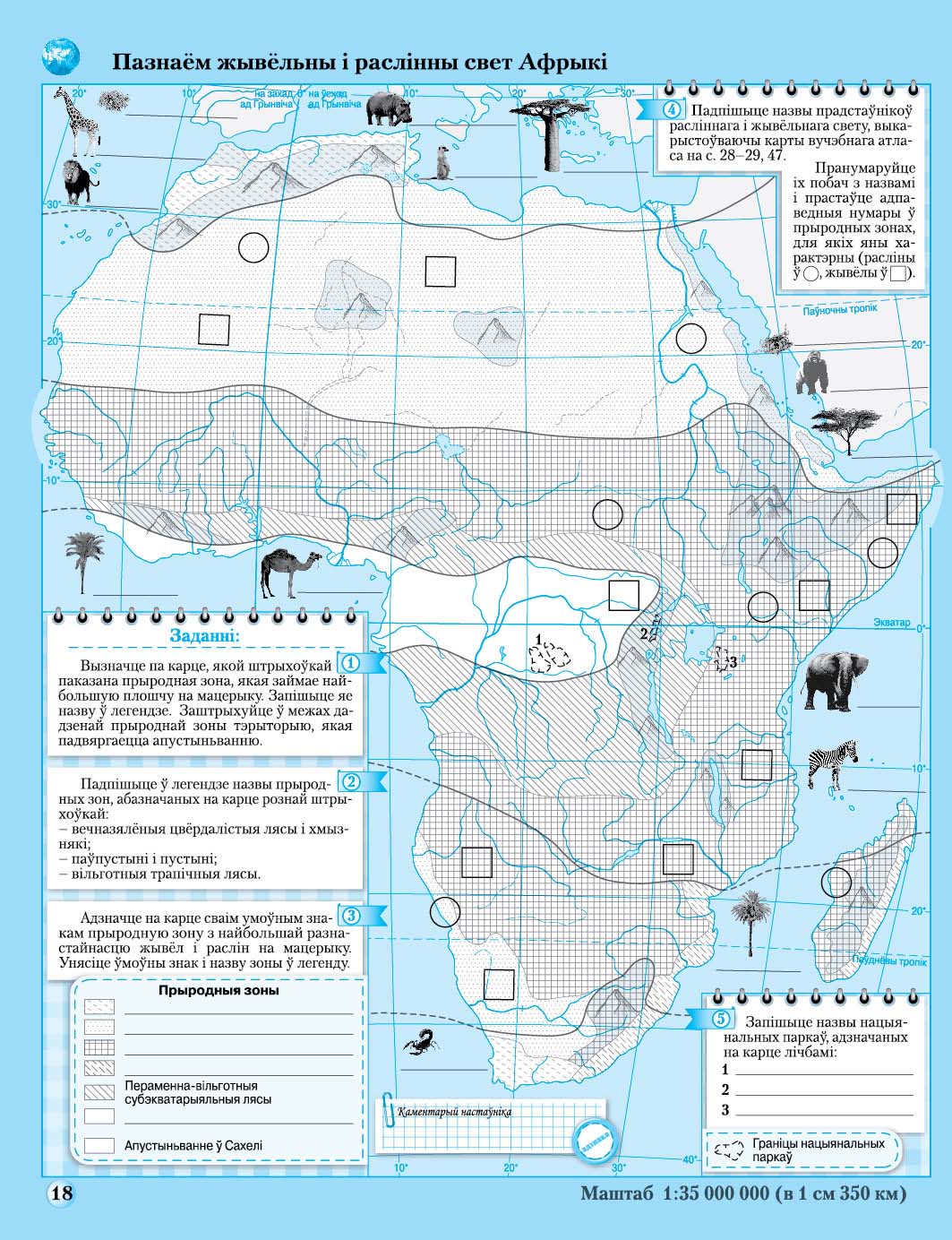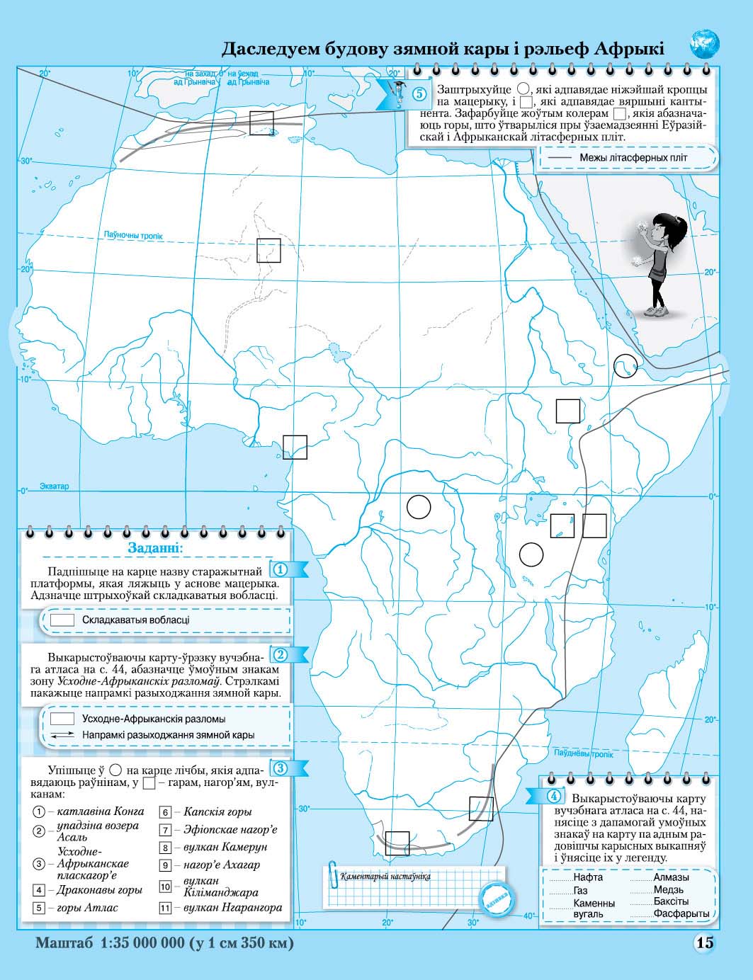 КОНТУРНЫЯ КАРТЫ. ГЕАГРАФІЯ. МАЦЕРЫКІ І АКІЯНЫ. 7 КЛАС
