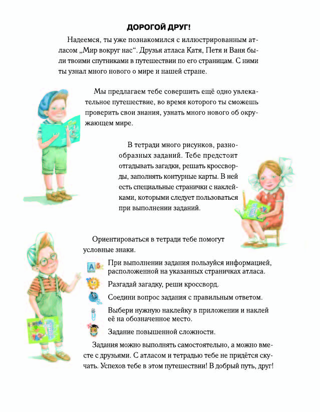 Рабочая тетрадь является дополнением к атласу "Мир вокруг нас". В ней содержатся задания по всем разделам атласа, которые позволят ученику лучше усвоить материал учебного предмета "Человек и мир". Она включает различные практические задания, необходимые для закрепления знаний и развития навыков работы с картой. Большое количество иллюстраций и использование наклеек для выполнения некоторых заданий повышают заинтересованность детей в их выполнении.